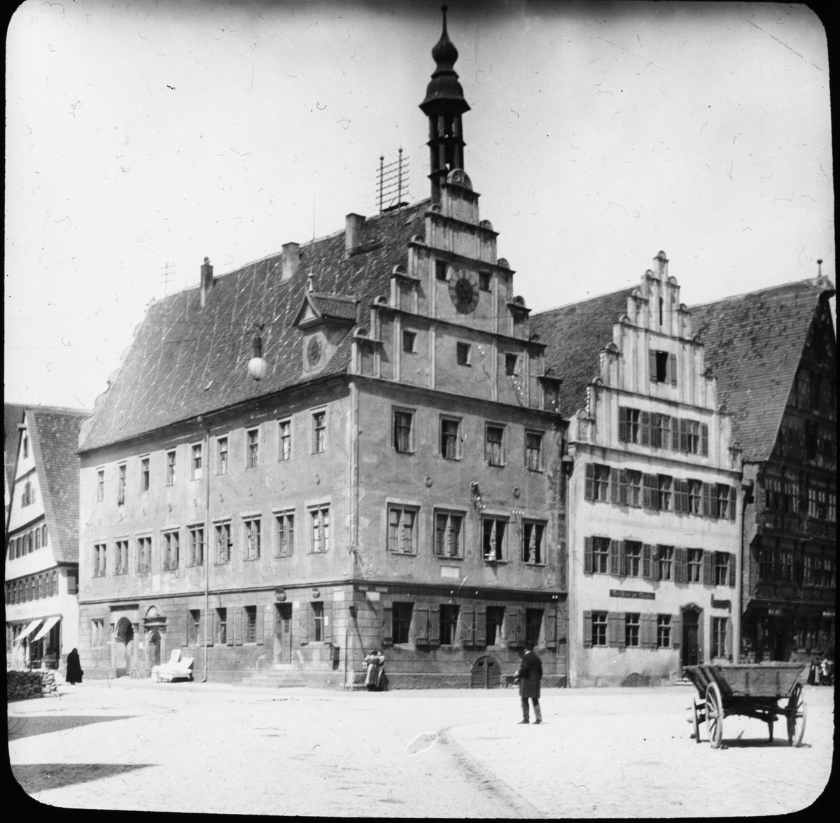 Skioptikonbild med motiv från Weinmarkt i Dinkelsbühl.