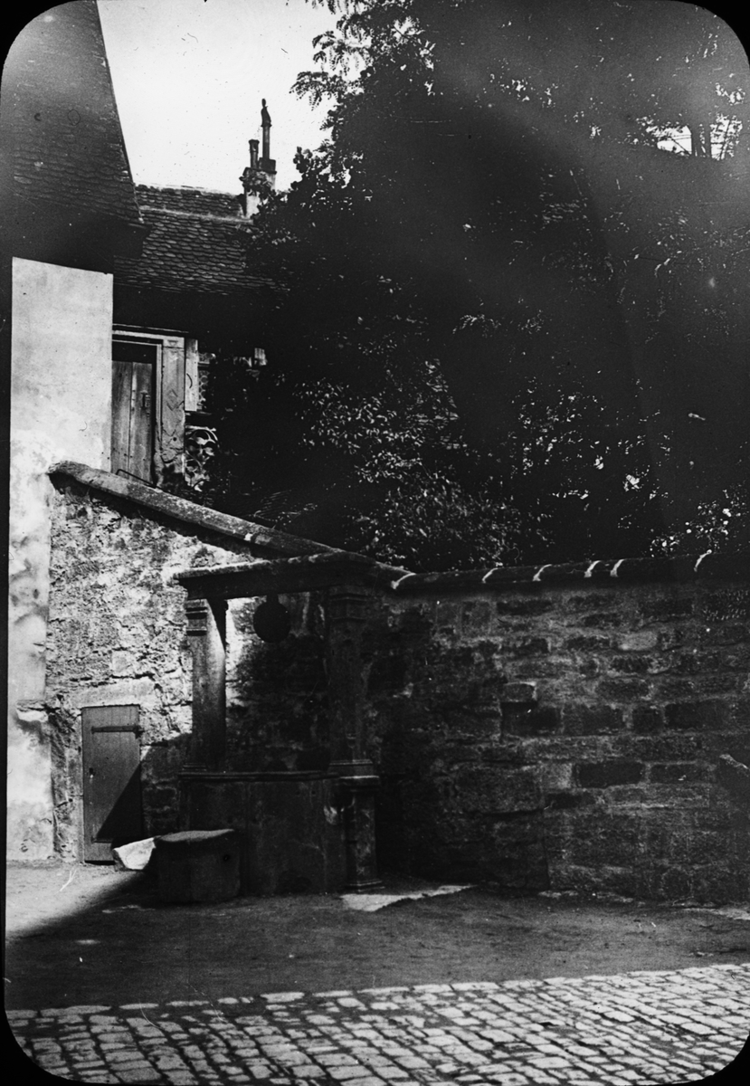 Bilden har förvarats i kartong märkt: Vårresan 1910. Rothenburg. XXVII. Text på bild: "Vid Jakobskirche".