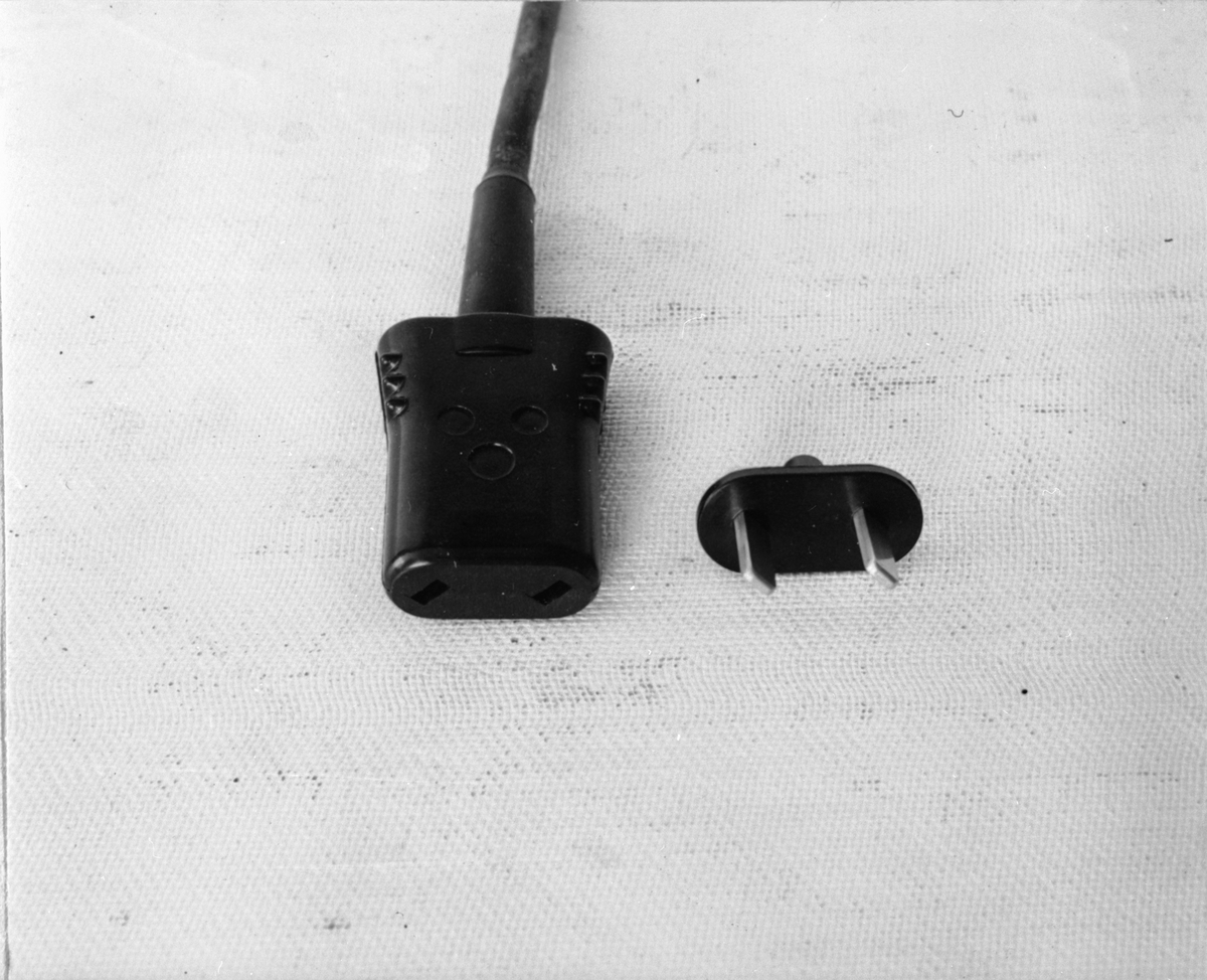 Apparatintag och apparatkontakt med flata snedställda stift. Produktions- verktyg färdiga.
