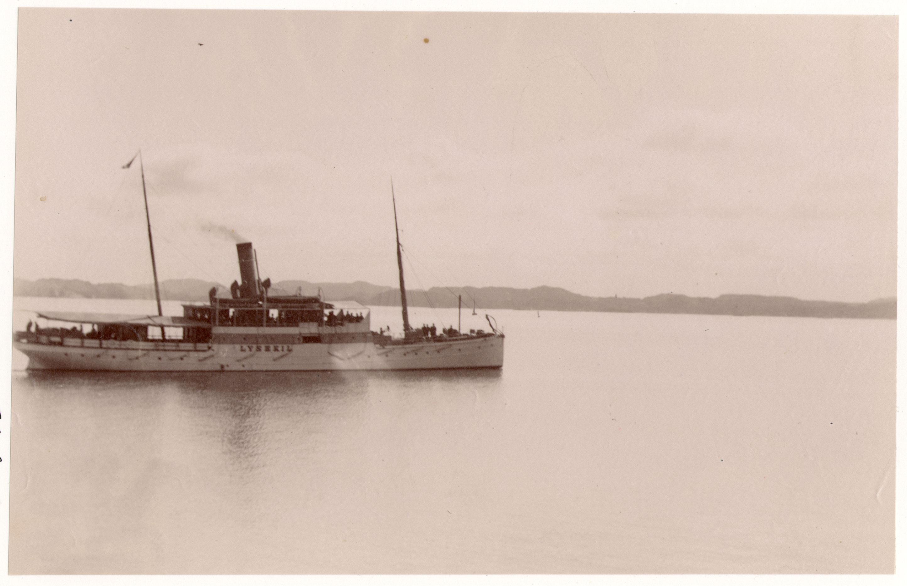 Ångbåten Lysekil (byggd 1884) på Gullmarn (Gullmarsfjorden). Skaftö på andra sidan vattnet.