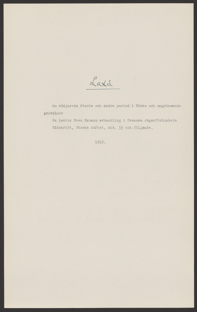 Titel: Laxåverken. Laxå bruks kronologi. Tivedens fauna och flora. Ur Carl Sahlins bergshistoriska samling.