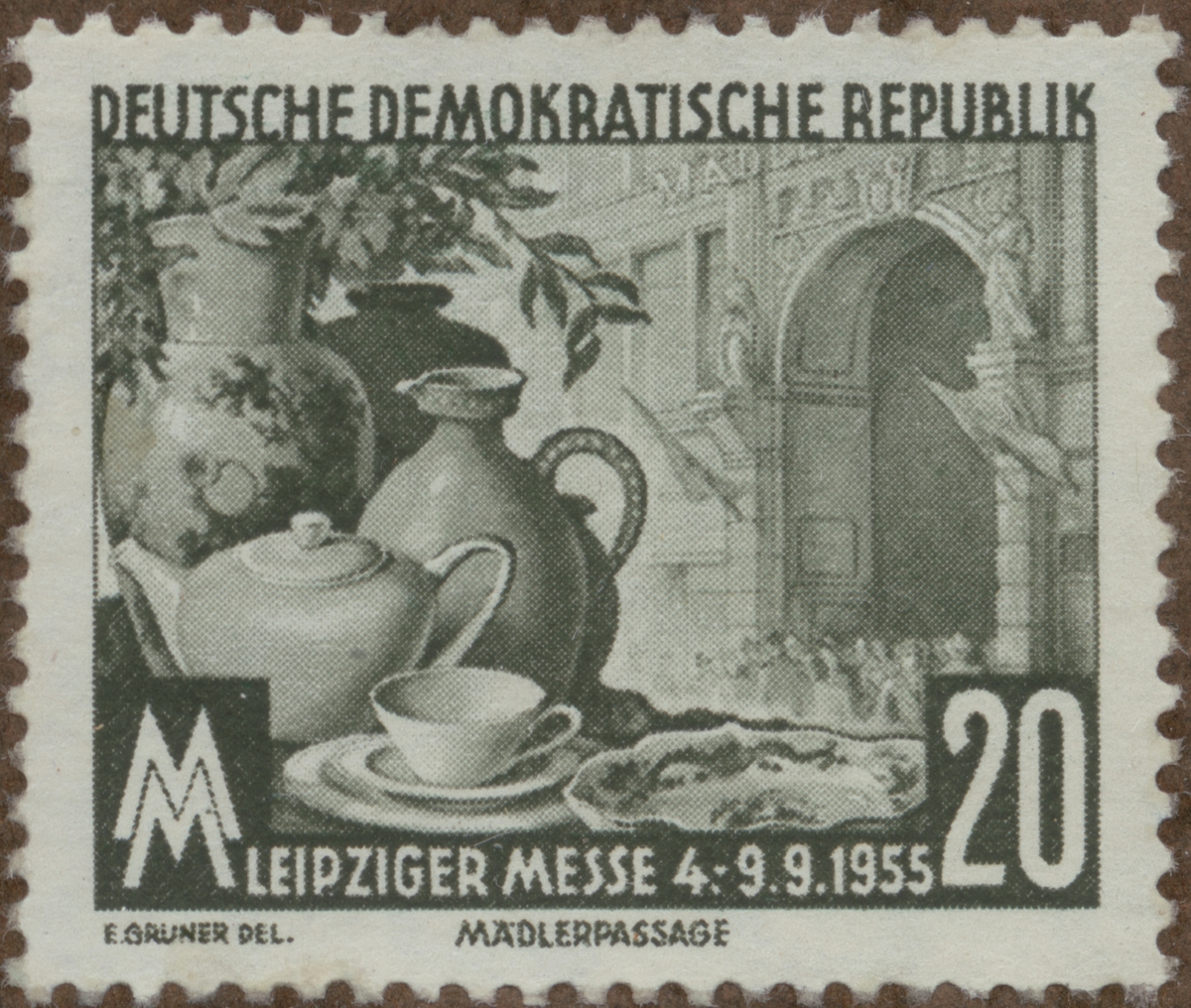 Frimärke från Östtyskland, 1955. Motiv av keramik. "Leipzigermässan 4-9.9.1955".
