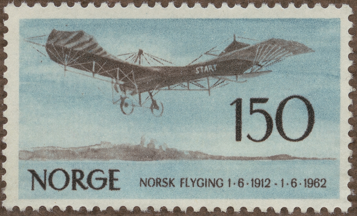 Frimärke från Norge, 1962. Motiv av Norsk luftfart 50 år: 1-6-1912: 1-6-1962.