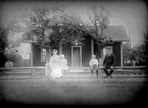 FAMILJ FRAMFÖR GAMLA BANVAKTSSTUGAN.