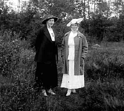 TVÅ VÄLKLÄDDA KVINNOR UTE I NATUREN.