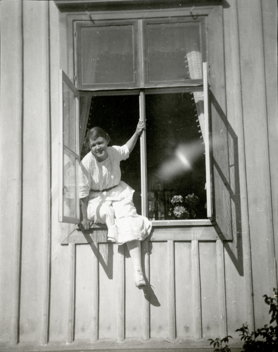 Märta Tengstrand på väg ut genom fönstret
