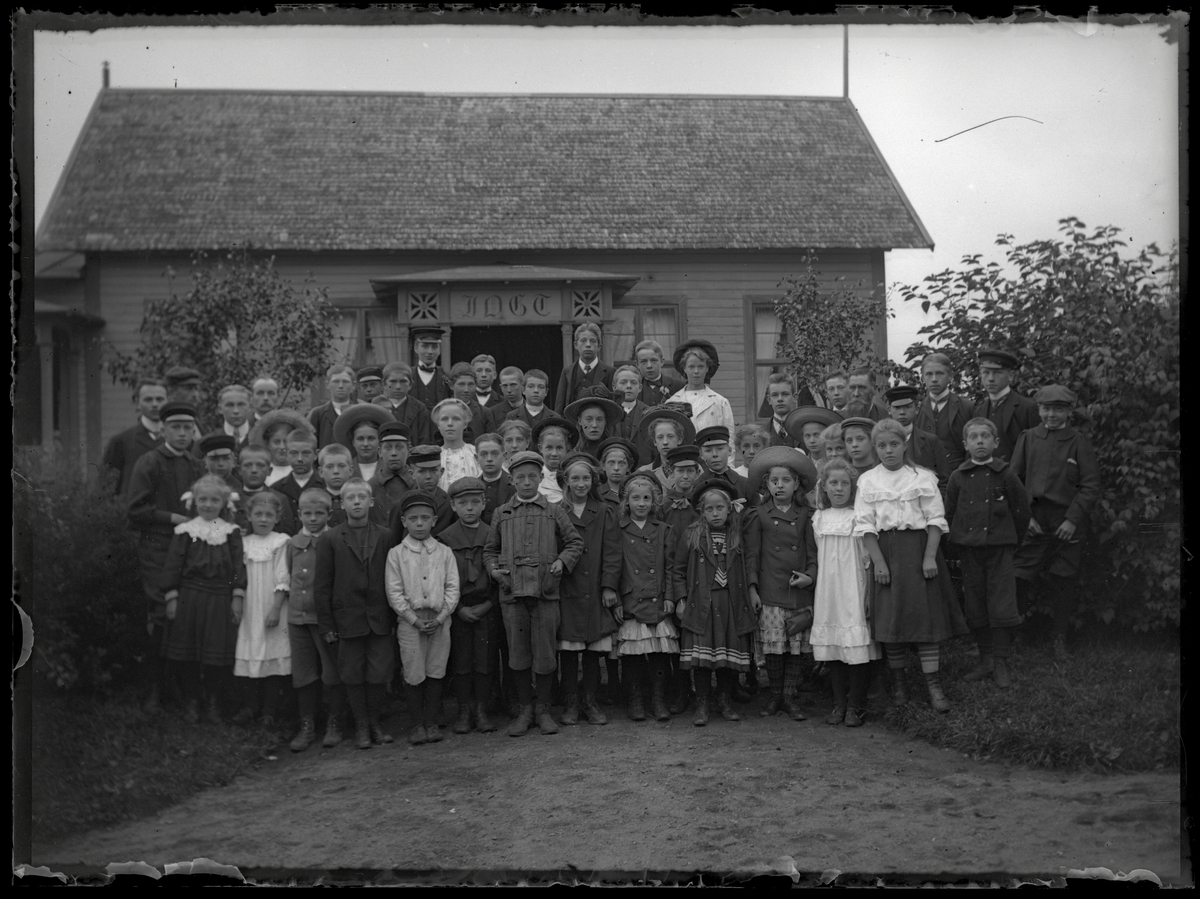 Barn och vuxna framför IOGT-lokal