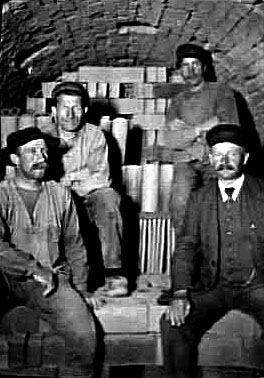 FYRA MÄN I EN BRÄNNUGN FÖR TEGEL.