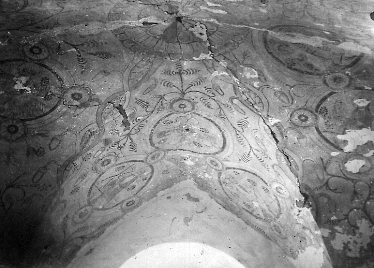 Den romanska stenkyrkan, riven 1877, hade kalkmålningar från 1400-talet, troligen utförda av Amund, och ett skulptursmyckat gravkor för adelssläkten Ribbing från 1646. Detta finns ännu kvar på ödekyrkogården.