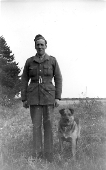 Lars Eriksson och hunden Tussie, Heljesgården c:a 1953.