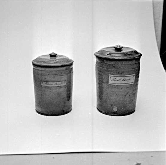 Skara. Veterinärinrättningen. Veterinärapotekets burkar.