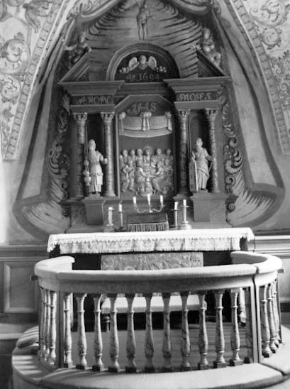 Kyrkan av sten med smalare kor härrör från 1200-talets början. Enligt traditionen byggdes den 1228 av Erik läspe och halte till minne av faderns segrar vid Lena 1208 och Gestilren 1210. Den förlängdes mot väster samt välvdes på 1400-talet varvid också södra vapenhuset byggdes. De tre takryttarna uppfördes enligt traditionen på 1500-talet till minne av att Birger Jarl, hans son Valdemar och kung Håkon IV Håkonsson av Norge påskdagen 1258 bevistat högmässan i kyrkan. Vapenhuset i väster byggdes 1716. Kyrkorummets rika målningsdekor tillkom 1749; därunder finns målningar från 1400-talet, tillskrivna Amund. Altaruppsatsen och predikstolen är från 1694. En madonna härrör från 1200-talet och dopfunten från 1100-talet.