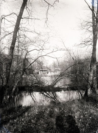 Vattenfall i ån Tidan, delvis skymt av vegetation 27 maj 1902.