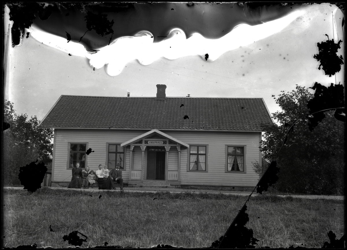 Familj framför skolhus