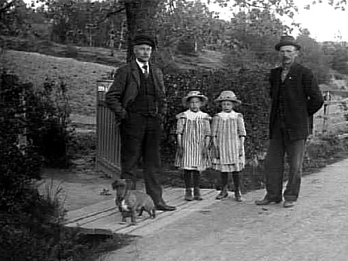 TVÅ MÄN OCH TVÅ FLICKOR UTOMHUS. GUNNAR HETER EN AV MÄNNEN.