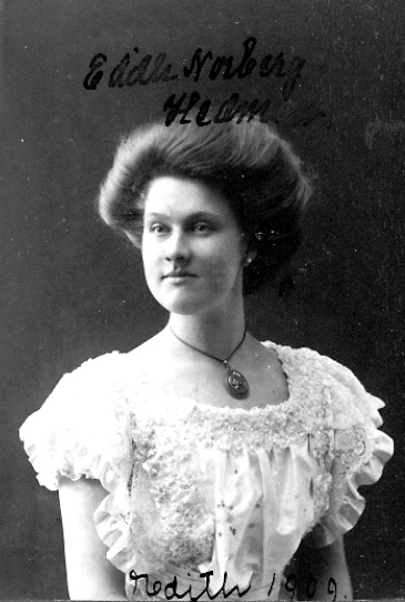 "Med tillgifvenhet från din vän Edith Norberg." Edith Norberg-Hedman år 1909.