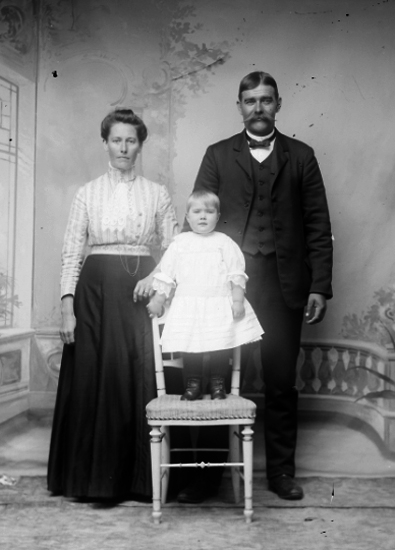 Par med en flicka stående på stol.