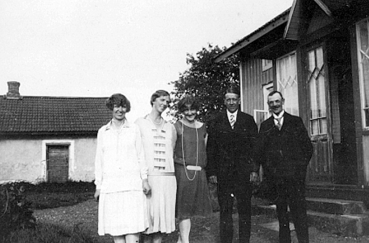 Titel: Ella Sahlin (f. Dimberg) tvåa från vänster. Olle och Märta (f. Påhlman) Sahlins samling, Göteborg.