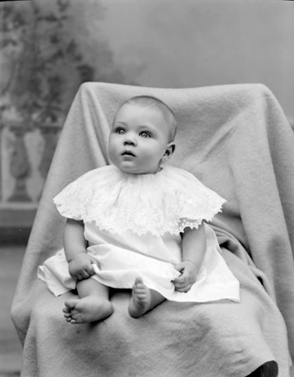Titel: Ateljé. Litet barn i stol. Fotograf: Ellen Kock? Axel Lundbäck m.fl. Gullspångssamlingen. Bilder från Gullspång med omnejd.