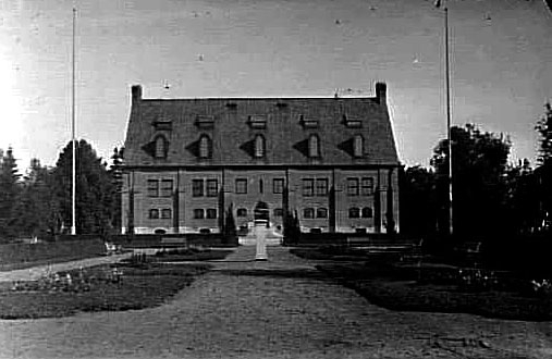 EXTERIÖR AV MUSEET MEN PLANTERINGAR I FÖRGRUNDEN.