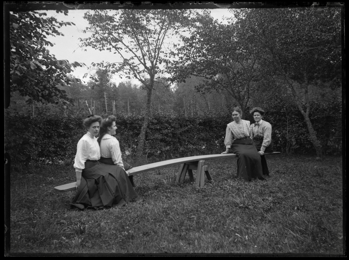 Tre unga kvinnor på gungbräda