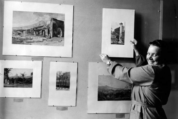 Konservator Beda Westman ordnar Regina Kylberg- utställningen.