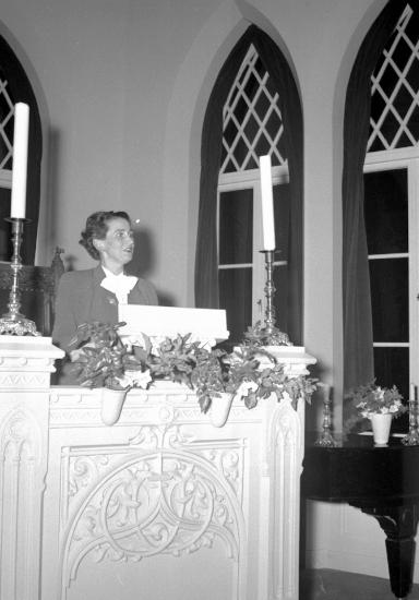 Titel: Skara. Barbro Svinhufvud föredrag i Läroverkets aula.