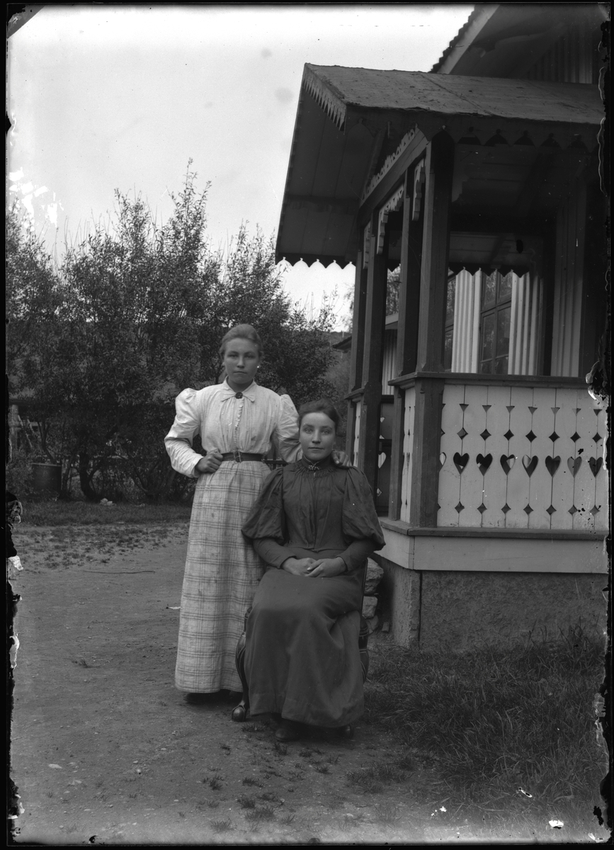 Kvinnor vid bostadshus