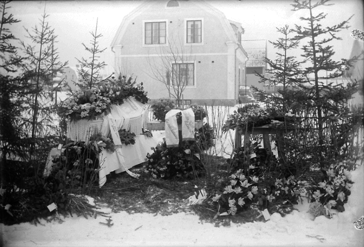 Text på banden: "Sov i ro kära Iza" och "En sista hälsning Gösta, Karl, Edvard".