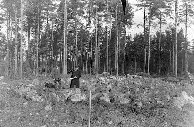 Fredsbergs socken. Jordblandat röse med fotkedja beläget i ett rösegravfält vid Levsäng.