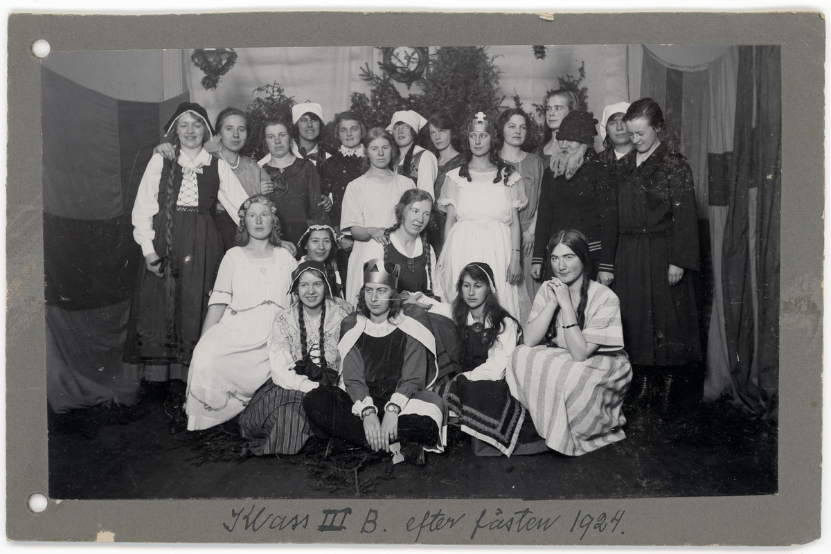 Maskeradklädda elever vid Skara folkskoleseminarium.