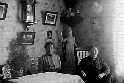 TVÅ KVINNOR SITTANDE I FINRUMMET.