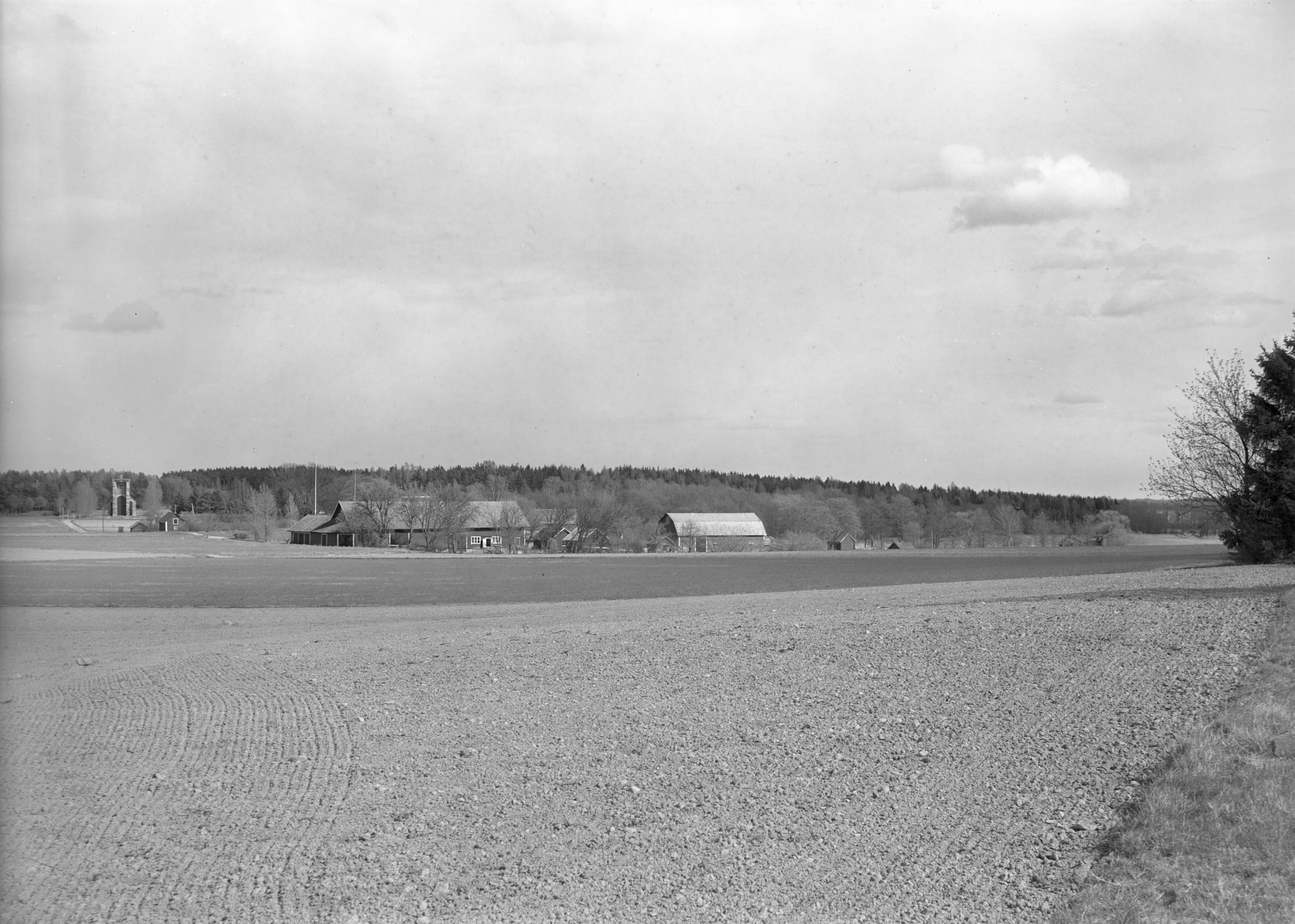 Gård med Björkö kapell i bildens vänstra del.