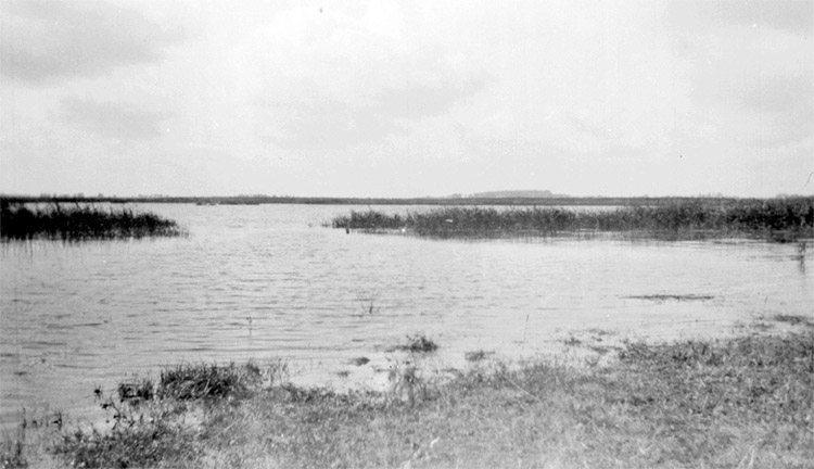 Hornborgasjön med Dagsnäs park i bakgrunden, taget från Stommen i Hornborga.