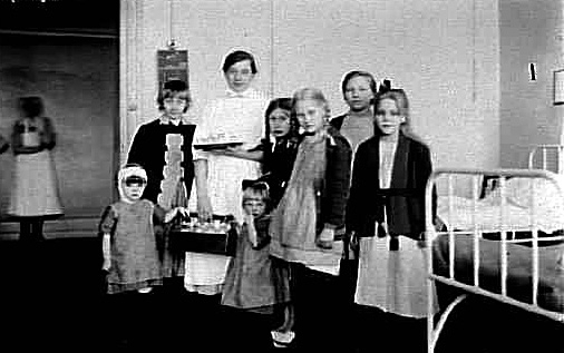 SJUKSKÖTERSKA OCH PATIENTER PÅ LASARETTET I MARIESTAD.