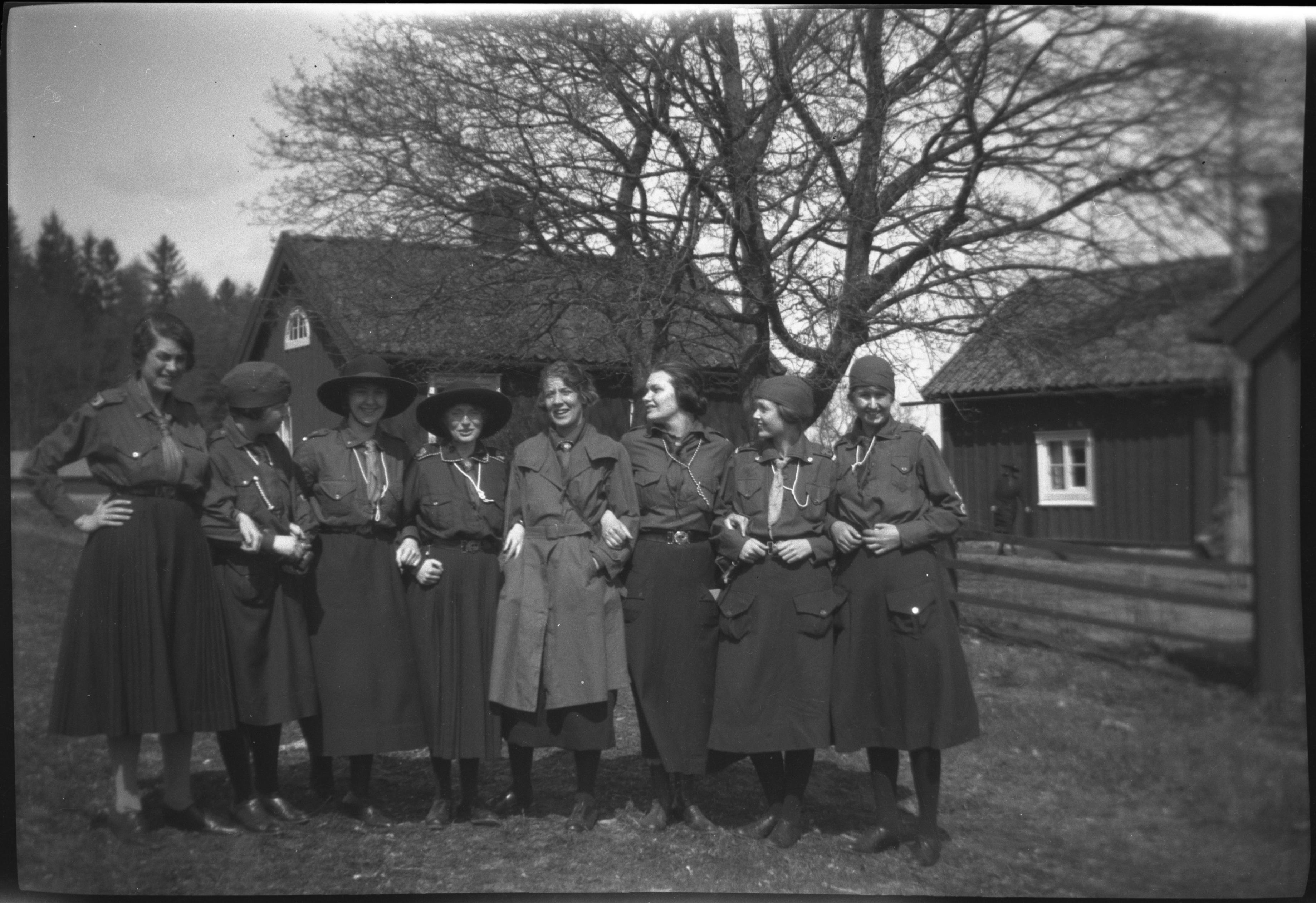 Flickscouter vid gården Frustunaby utanför Gnesta, som donerades till Sveriges Flickors Scoutförbund 1925. Tredje flickan från höger är möjligen Berit Wallenberg. Idag ägs och används gården av SFF, Svenska Scoutförbundet.