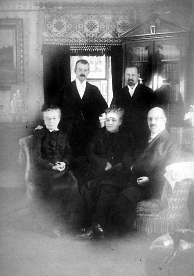 "Vid Mors begrafning Jan. 1915" Maths, Yngve, Mathilda, Maria och Sten Sjöstedt. I syster Marias hem i Hjo.