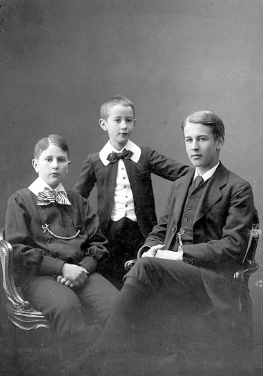 Lasarettsläkare Carl Barks pojkar: Gunnar, Harald och Bertil, Södertälje.