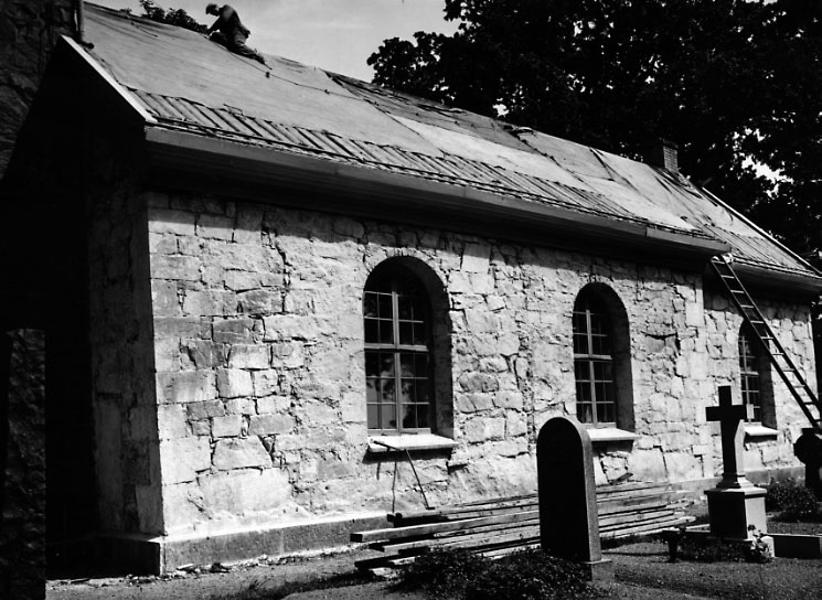 Kyrkan av sten med smalare långsträckt kor härrör möjligen från ca 1200. Tornet av tuktad granit byggdes 1884. Altaruppsatsen härrör från1600-talets senare del. Dopfunten från 1100-talet samt några träskulpturer från ett altarskåp från 1400-talet har bevarats.