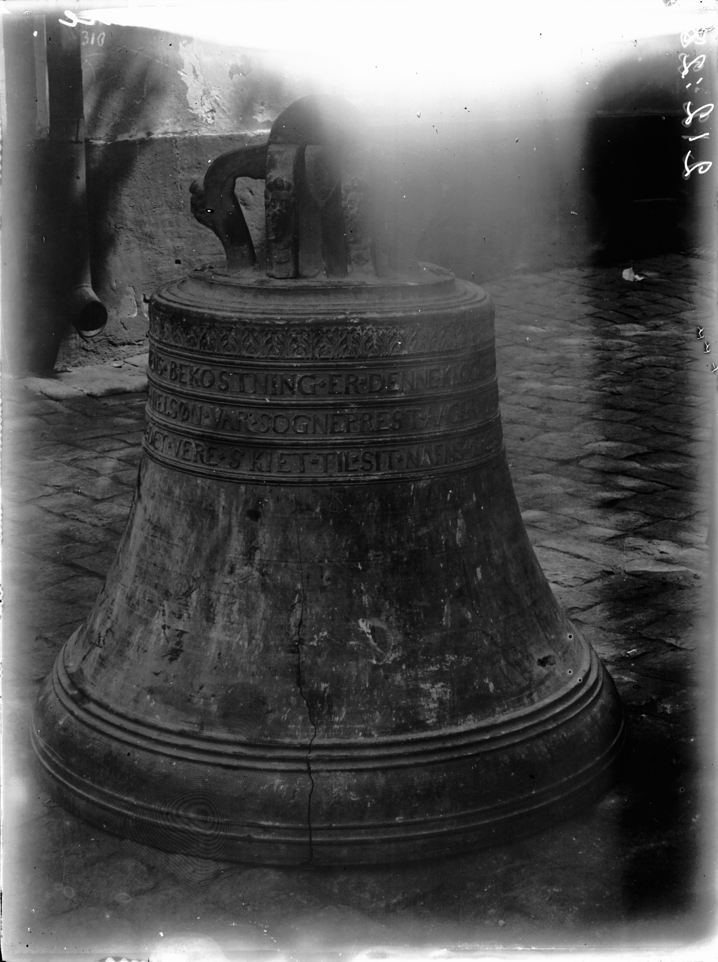 Klocka av malm, omgjuten av J. A. Bäckman och Hugo Lind, Stockholm, 1912.
