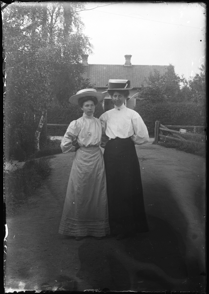 Två kvinnor med stora hattar