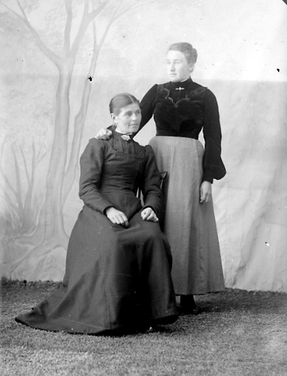 Titel: Ateljé. Två damer. Fotograf: Ellen Kock? Axel Lundbäck m.fl. Gullspångssamlingen. Bilder från Gullspång med omnejd.