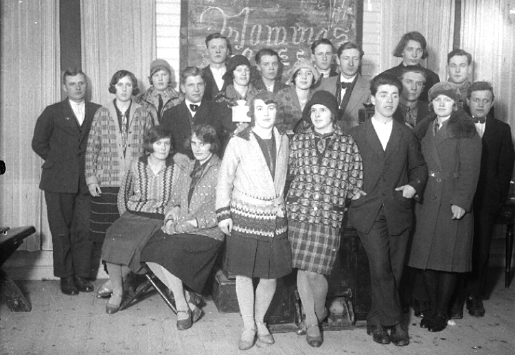 Stående (i kappa): Stina Andersson, syster till fotografen.