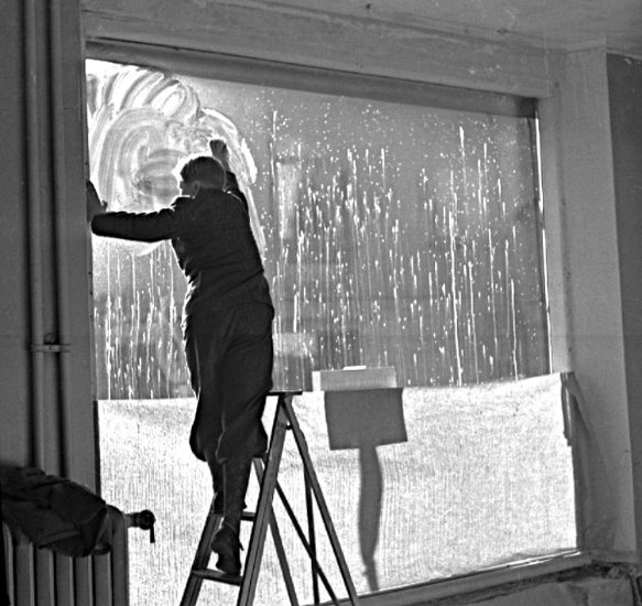 Skara. "Springpojkar". Gerhard Lindén, Skara Pappershandel. "Fönsterputs".
