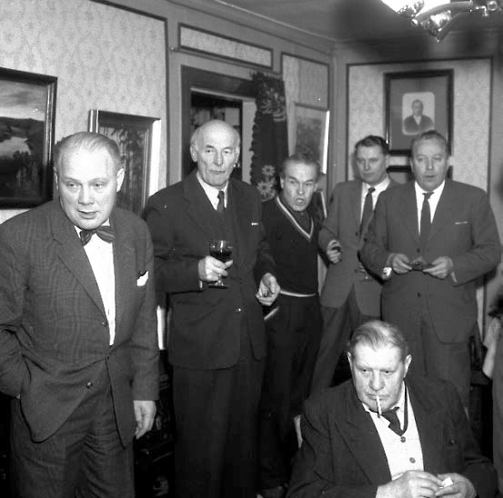 Titel: Skara. Idrott: Gamla SI:are på julgransröstning hos "Moppe" 11/1 1961. Foto: Stig Rehn 5.
