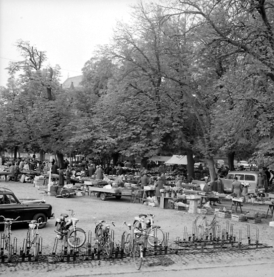Full kommers på Grönsakstorget, Skara, 1966.