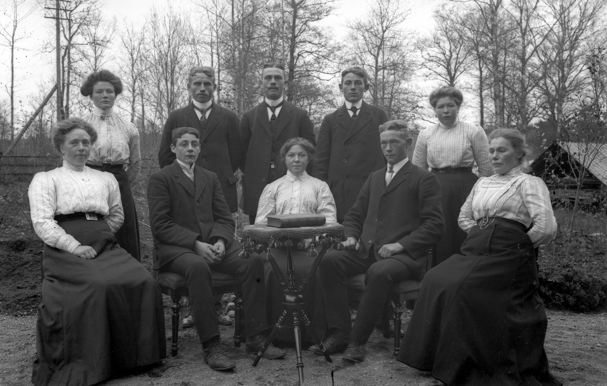 Grupp ute runt bord