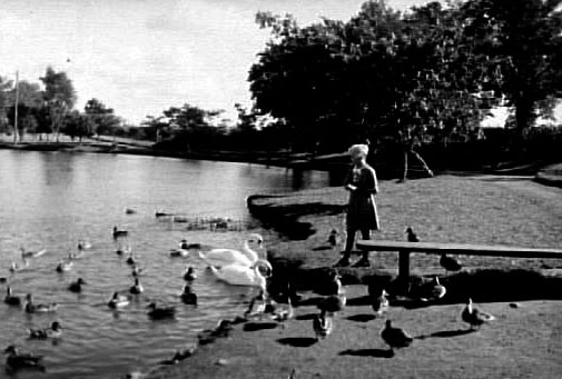 EN FLICKA MATAR FÅGLAR VID VIKTORIASJÖN I SKARA