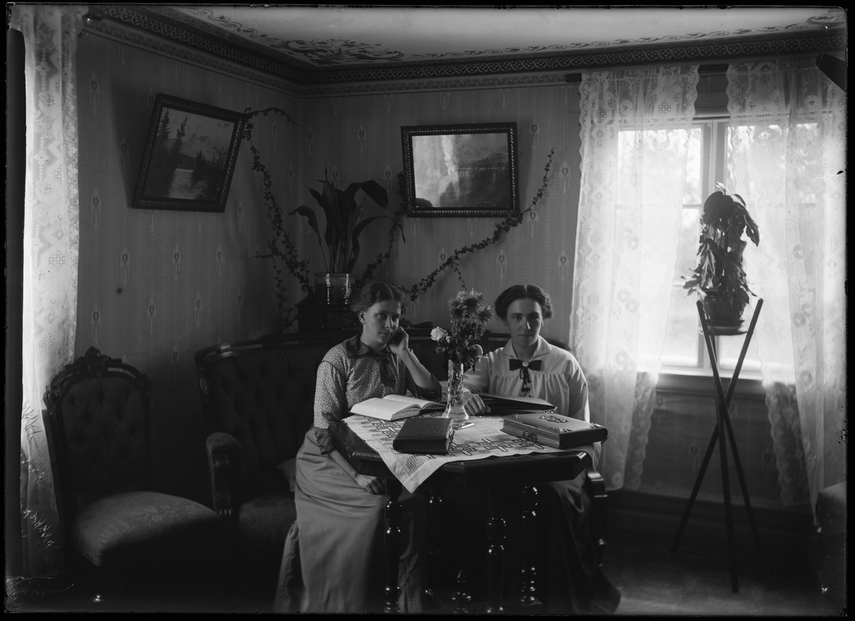 Två kvinnor läser vid bord