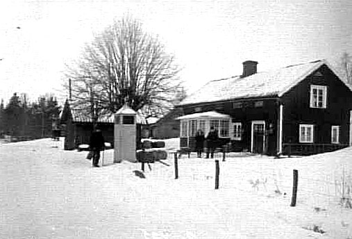 I FÖRGRUNDEN ETT MINDRE FYRKANTIG KUR SOM SANNOLIKT INNEHÅLLER EN FOTOGEN- ELLER BENSINPUMP.